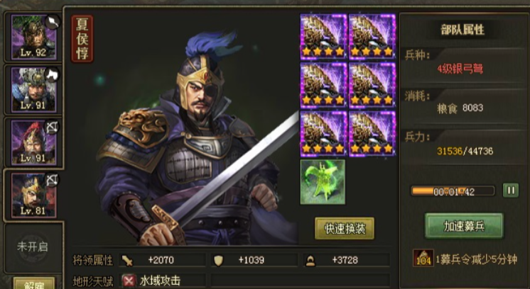 平原场景优先使用庞德、徐晃,山地地形推荐孙策或夏侯渊,水域则依赖夏侯惇和甘宁。吕蒙作为攻城特化武将,在占领城池时战法不减半且自带30%伤害加成,是国战中的战略选择。需注意武将兵种颜色差异,红色兵种属性优于黄色,例如庞德虽是红将但兵种为黄,后期需及时替换。