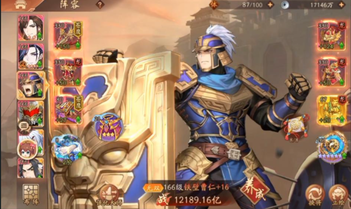 魏国阵容以曹操、郭嘉、荀彧、曹仁、乐进为核心。曹操作为前排肉盾兼具沉默控制,郭嘉负责减怒干扰,荀彧提供增益buff,乐进可走极限输出路线。该阵容培养成本较低,通过频繁的技能释放形成压制力,尤其适合持久战。建议将资源集中投入曹操和乐进,前者提升生存能力,后者强化爆发伤害。
