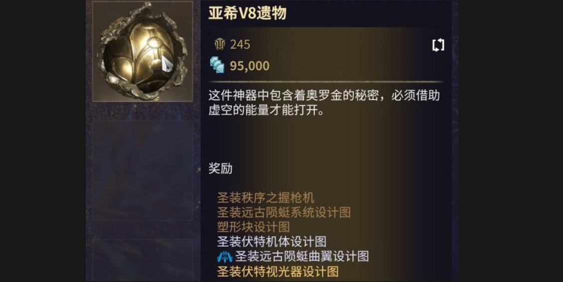 新出的圣装通常需要通过开启虚空遗物获取。虚空遗物是一种特殊道具,可在特定任务或活动中获得,分为不同等级(如当纪、前纪、中纪、后纪)。玩家需参与对应等级的裂缝任务,收集足够的裂缝能量激活遗物,完成任务后随机获得圣装部件。为提高稀有部件掉落率,可使用裂缝能量升级遗物至异常或辐射级别,或组队使用同类型遗物以增加奖励选择范围。