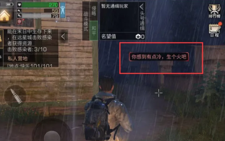 除了自己造篝火,安全小屋里的壁炉和快乐101的公共烤炉也是取暖神器。靠近这些地方点右下角的加号,塞进去几块木头就能点火。自己放的篝火如果拆掉就没了,而且下雨天在户外根本点不着火,这时候就得赶紧找室内躲着。生火不仅能保暖,还能顺便烤点鱼肉吃,简直是一举两得。