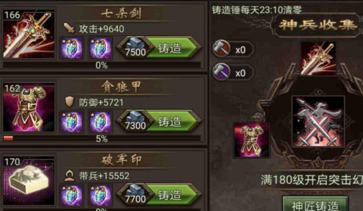 百炼钢是攻城掠地中用于神兵升级的核心资源,其获取途径有限且价值较高。玩家需要通过铁匠铺熔炼、功勋奖励、特定活动等方式收集百炼钢。铁匠铺是主要来源,玩家需达到101级并消耗金币升级铁匠铺等级,每日熔炼次数有限,但可通过消耗银币、宝物等提升效率。功勋奖励中的功高礼重研究完成后可定期获取少量百炼钢,而矿山、神兵锻造等活动则是阶段性补充资源的关键渠道。