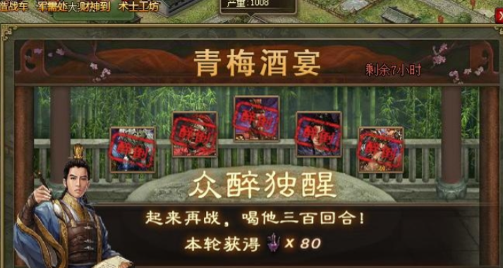 除了活动,平时多留意主城功能也能攒酒。比如改造后的主城每天会开放宴会功能,参与后能额外拿到40万武将经验的同时,还会随机掉落美酒。如果咱们的武将品阶够高,犒赏时还能触发宝箱奖励,选择倍数开启的话有机会暴击获得更多资源。活动结束后多余的美酒会消失,所以尽量在期限内用完,别囤着浪费。