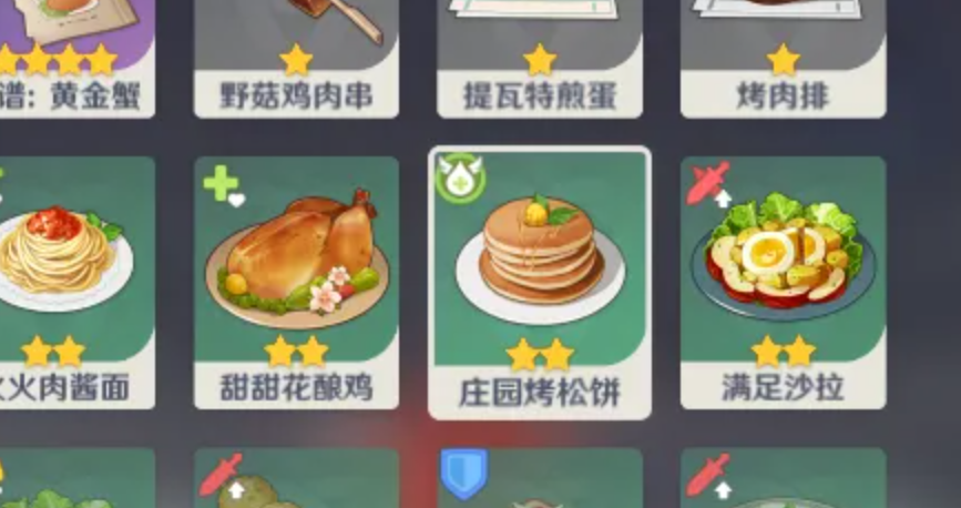 庄园烤松饼是原神中一种二星料理,能够为选中的角色恢复生命值上限的4%-8%,并在角色死亡时提供复苏效果。该食谱可通过猎鹿人酒馆购买获得,制作材料包括树莓、面粉和鸟蛋。当使用诺艾尔进行烹饪时,有概率获得特殊料理厚云朵松饼,其恢复效果更为显著。