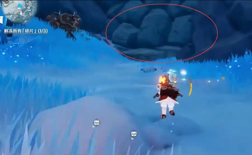 如果是在做山中之物任务,比如解锁七天神像或者调查奇怪的冰,通常需要连续找好几块深赤之石才能完全融化冰块。比如覆雪之路和雪葬之都近郊的冰块,周围一般会刷出四块石头,全打掉才能彻底解冻。有些石头藏在怪物堆里,建议先把小怪清掉再拿,不然打着打着红光就消失了。雪山天气冷,别忘了带点耐寒食物或者火系角色,免得冻掉血影响操作。
