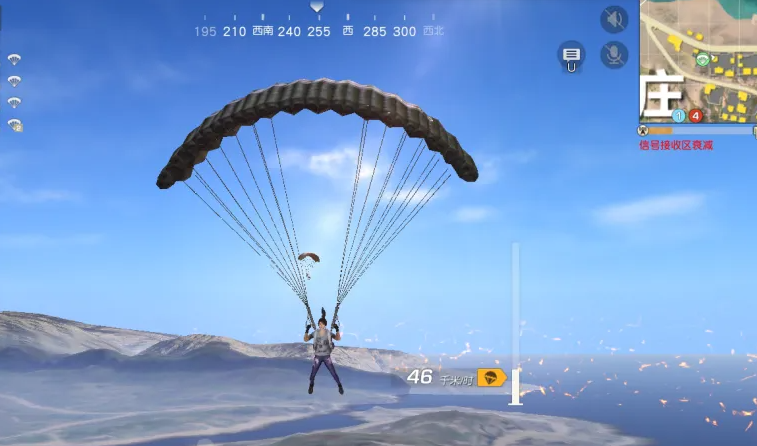 跳伞的第一步是观察飞机航线并提前标记目标点。飞机起飞后会沿固定路线飞行,打开小地图可以清晰看到当前航向。建议在距离目标点约2000米时跳伞,垂直下落可最大化速度优势。跳伞时需调整视角,将方向键向上推并保持头部朝下,使下落速度达到极限165km/h,从而缩短空中停留时间。若目标点较远,则需提前跳伞并利用滑翔机制,通过同时控制方向键和视角键实现远距离飞行。