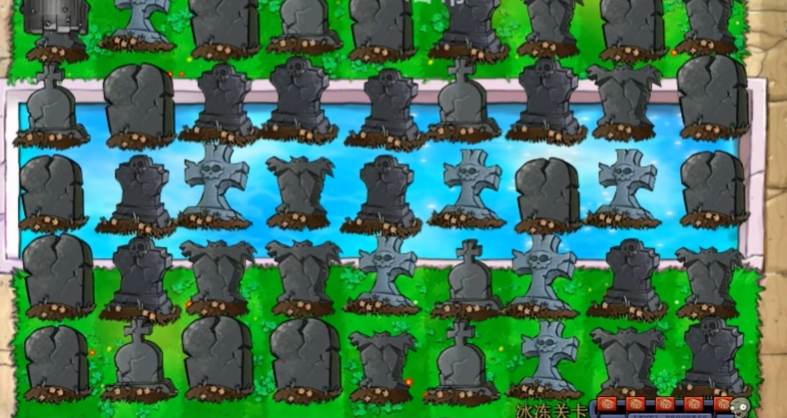 开局阶段必须快速建立阳光经济,建议在第一列种植双胞向日葵以保证阳光供应充足。由于关卡中墓碑会不断出现,需要及时清理并补充防御植物。土豆雷是性价比极高的选择,消耗50阳光且准备时间短,3×3的范围伤害能有效应对初期僵尸潮。注意墓碑出现位置,优先在僵尸行进路线上布置防御。