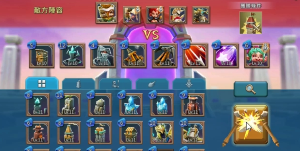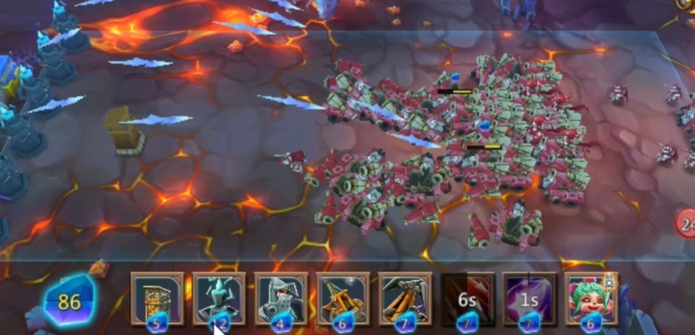 面对海量敌军时,建议先在后场埋下魔像和攻击塔,等敌方部队进入射程再释放技能。灯塔的超远射程是本关的神器,能有效压制对方炮车。当敌方英雄出现时,立刻用图腾咬住他们,并补一个肉盾英雄保护图腾。记住要稳扎稳打,别急着推进,等清完兵线再慢慢向前布置炮车。