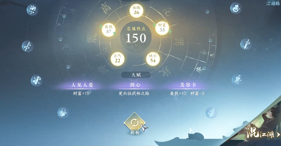 开局阶段需重点刷新天赋属性,金色品质词条如转世神童能显著提升初始数值。18岁前的随机事件中,选择亿两黄金可直接获得100万启动资金。每日5个时辰的行动机会需优先用于混口饭吃提升职业等级,初期选择普通职业确保稳定收入,后续通过逍遥快活中听戏等选项积累人脉属性,逐步解锁高阶职位。
