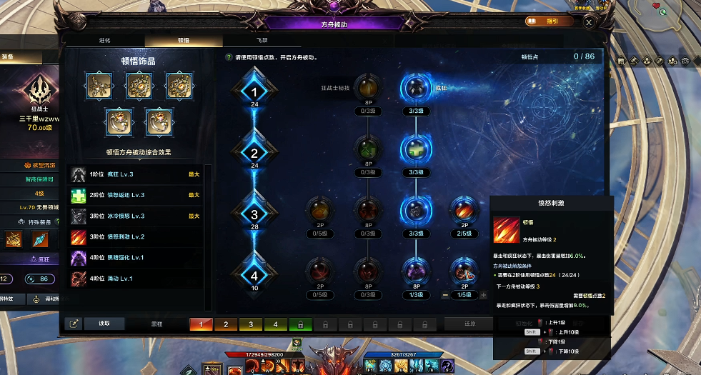 黑狂战的战斗特性围绕暴走状态展开。激活狂气刻印后,狂战士将永久保持暴走状态,但无法享受常规暴走的暴击率加成,转而获得稳定的伤害增幅和双速提升。该流派对技能循环要求较低,适合新手玩家快速上手。需黑狂战的生存能力依赖于高减伤机制,因此战斗中需合理规避高伤害技能,避免因生命值上限削减而陷入危险。