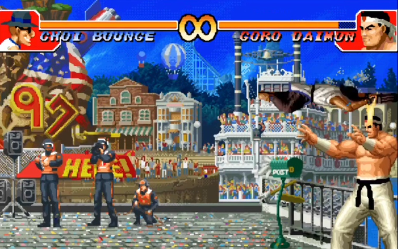 起飞后的飞行方向可以通过方向键灵活控制。按住B或D不放时,猴子会持续飞行,最多可进行四次刺击。飞行高度与起飞位置有关,离版边越远飞得越高,靠近版边则飞行较低。如果想快速贴近对手,建议用下蹲蓄力接上+B/D,起飞速度更快;若需要远距离突袭,后退蓄力接前+B/D更适合。