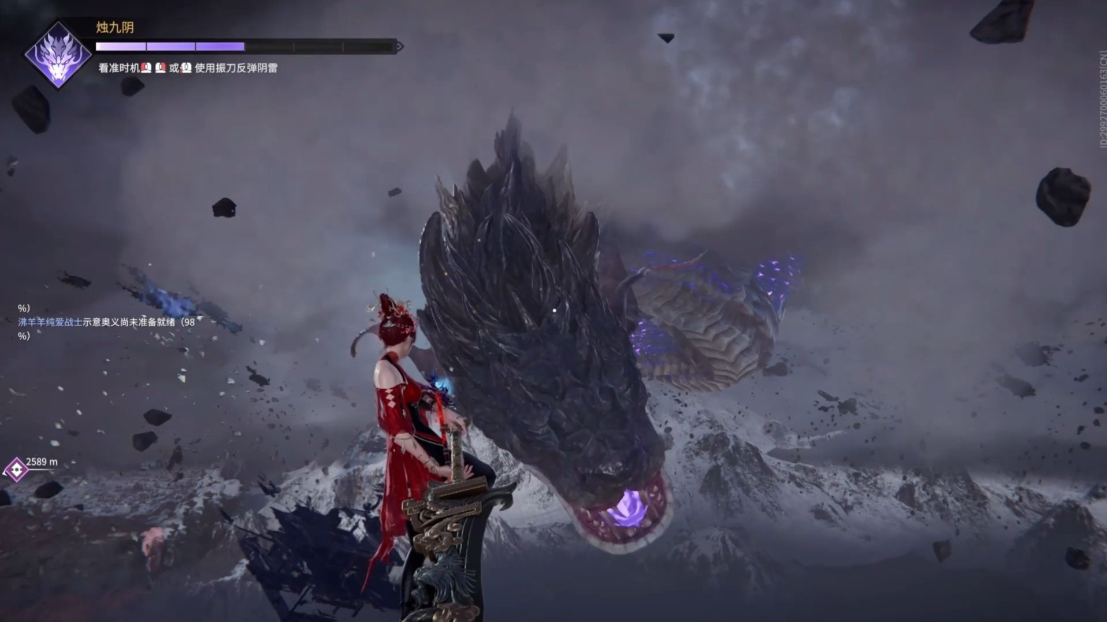 面对烛龙(即玩家俗称的蛇)的战斗需要掌握特定的机制与技巧。烛龙会释放引雷攻击玩家,关键在于利用振刀反弹其攻击。当烛龙释放引雷时,玩家需精准把握时机,同时按下鼠标左右键触发振刀,成功反弹引雷可对烛龙造成伤害。重复此过程直至其血量耗尽即可通关。