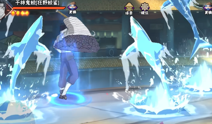 鬼鲛的一技能水遁·水鲛弹能让他包裹在鲨鱼状水弹中突进,并在终点留下水潭,二技能雨四鲛则能在周围召唤四只鲨鱼持续浮空敌人。这两个技能伤害高但前摇明显,我们可以通过预判走位或使用控制型秘卷(如冻雪、扦插)打断他的节奏。注意他的奥义大鲛弹之术是全屏攻击且附带僵直效果,最好保留替身术或通灵兽来规避关键伤害。