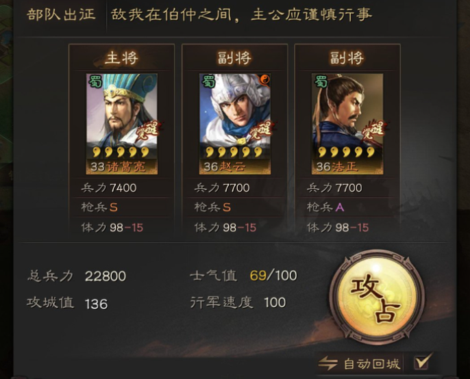 攻打六级地是三国志战略版玩家成长过程中的重要里程碑,需要充分准备和周密策略。首先必须确保主力队伍兵力达到12000同时配备6000左右的清扫队作为后备力量。六级地守军通常由两队15000兵力的部队组成,且存在5分钟的时间限制,若两次战斗均平局则会导致失败。因此兵力充足是基础条件,建议武将等级达到30级并完成觉醒,核心战法需提升至满级以增强战斗力。