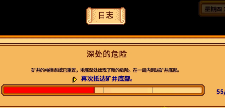 完成深入地底任务,咱们得先明白它的核心要求——通过挖矿到达矿井最底层。这个任务虽然没有直接奖励,但它是推动主线剧情的关键一步,还能解锁更多游戏内容。矿井里每五层会有一个电梯,咱们可以利用这些电梯快速下到已经解锁的层数。记得每天看电视占卜,选个运气好的日子下矿,这样能提高找到楼梯和宝箱的几率。