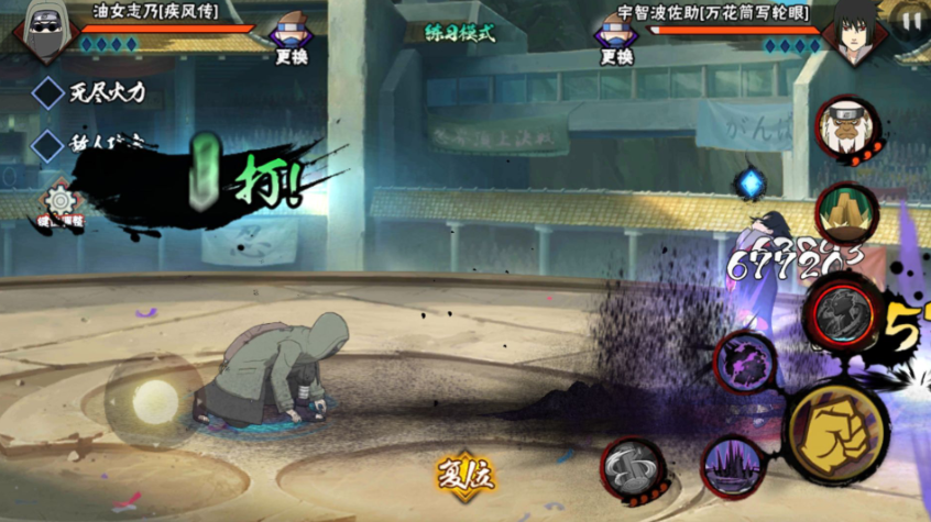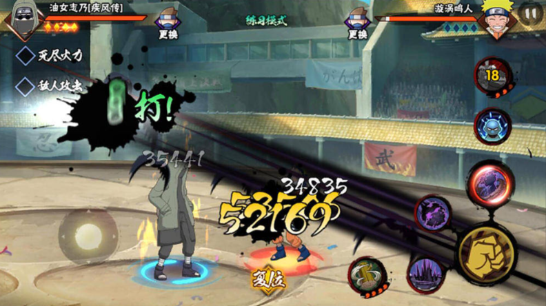 油女志乃疾风传被定位为跑酷型忍者,适合通过灵活的走位进行远程消耗。玩家需要避免与敌人近身缠斗,因为他的近战防御能力较弱,技能释放后存在短暂僵直,容易被打断。正确的打法是在安全距离利用虫玉的自动追踪特性进行起手,逼对手移动并叠加标记,同时利用虫柱的击飞效果来破解对手的落地保护机制。开局阶段可以选择在决斗场中央释放虫玉来建立初步压制,当敌人试图绕后时迅速切换虫柱反击。他的虫壁技能能击退近身敌人,因此突进时需要保留替身术或霸体秘卷以防反打。保持Y轴斜向移动可以规避许多直线型攻击。