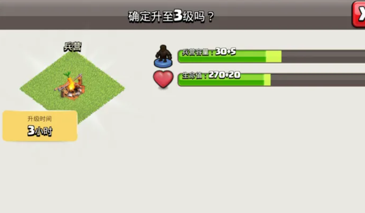 兵营扩大主要通过升级兵营建筑来实现,这能直接增加部队容量,从而提升玩家的出征兵力和战术灵活性。兵营作为训练和存放军队的核心设施,其容量决定了单次战斗可派遣的士兵数量,升级后可以容纳更多单位或解锁更高级的兵种,这对进攻和防御都至关重要。在游戏进程中,优先关注兵营的升级能有效增强整体实力,避免因兵力不足而影响战斗效率。玩家需要根据大本营等级来规划兵营升级,确保资源投入与战略目标一致。
