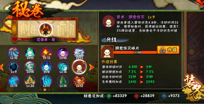 如果你想更精细地管理,游戏还提供了针对忍者的个性化配置。进入主界面后,别急着点秘卷,而是先戳一下左下角的忍者按钮,这会带你进入忍者列表。选中你想强化的那个忍者,点开头像进入详情页面,在那儿你能找到一个专门的秘卷选项。点击进入,界面会展示所有可用的秘卷,滑动浏览,挑出最适合这个忍者战斗风格的秘卷,然后点击装备确认。这样一来,这个秘卷就和忍者绑定了,以后在战斗中随时调用。每个忍者独立装备秘卷的设计,让你能根据不同战局灵活切换,挺贴心的。