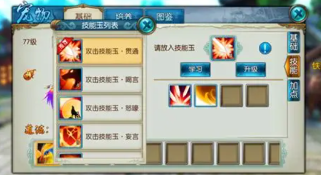 技能选定了,接下来就是怎么培养和运用了。学习技能的过程有点讲究,你得先用一些普通技能书把宠物的四个技能槽位都垫出来,然后再用你精心准备的核心技能书一本一本去替换,这样可以更稳妥地得到你想要的技能组合。宠物的属性加点同样关键,每升一级有5点潜力,通常建议围绕着它的主资质来加,比如主斗志的宝宝就多点斗志,这样可以最大化对应技能的加成效果。别忘了每天花点时间驯养一下宠物,用九转幻魂丹提升它的主资质和成长率;坚持喂养增加亲密度能提高技能释放概率;而提升星等则能按百分比全面提高宠物的基础属性,让你的投入获得更大回报。