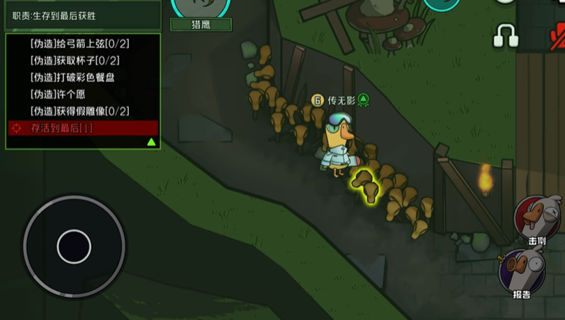 鹈鹕与猎鹰的玩法取向也大相径庭。鹈鹕玩家前期通常需要低调隐藏,融入人群以建立好人形象,寻找机会吞食落单玩家,尤其需要谨慎处理如加拿大鹅这类会触发自动报告的特殊角色。中期之后,鹈鹕可以更具侵略性,优先考虑吞食带刀角色(如警长、鸭子)以消除对自身的直接威胁。其策略可以是墙头草,根据场上鹅或鸭的势力强弱选择暂时依附,目标始终是活到最后并清场。而猎鹰玩家的策略则更侧重于生存与时机把握。前期应尽量跟随大部队行动,利用假任务进行伪装,避免过早成为焦点。由于其刀人冷却时间随人数减少而变长,需要谨慎选择出手目标和时机,通常优先击杀威胁较大的带刀角色(如狼人)以平衡局势。进入游戏后期,特别是临近触发猎鹰时刻时,策略应从主动出击转向极端求稳,寻找安全位置躲避,等待倒计时结束,因为生存是此刻的第一要务。