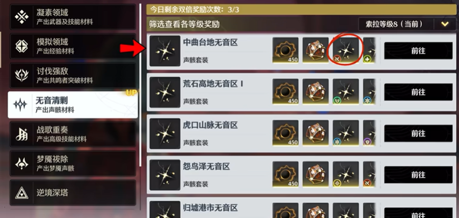快速刷体力必须搭配高效副本选择,才能让每一点体力转化为实质养成进度,优先选择消耗固定、掉落集中、通关速度快的副本,减少战斗耗时,提升单位时间体力消耗效率。角色突破副本、技能材料副本、武器强化副本优先级最高,对应核心养成线,掉落道具不可替代,速通阵容搭配完成后,单轮耗时短,体力转化率稳定。无音清缴与声骸副本适合在掉落增益期间刷取,平时仅按需补充,避免体力分散,贝币与经验素材副本可在核心养成材料充足时补充,保证资源链完整,不出现断层。