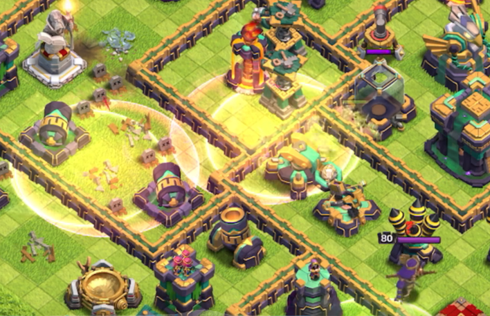 进攻前需观察阵型布局,优先选择建筑密集、防空分散的阵型,避开防空集中且空气炮强势的紧凑防空军备,开战前用少量气球探路排查空中陷阱,提前锁定敌方部落城堡位置,用毒药法术快速清理援军,避免援军持续干扰雷电飞龙输出,清边环节至关重要,在主力落点两侧用飞龙宝宝与少量气球清理边角建筑,引导雷电飞龙沿直线向核心区域推进,防止部队分散绕边导致输出不足,清边完成后再集中投放主力,保证雷电飞龙集群行进,最大化链式闪电覆盖范围。
