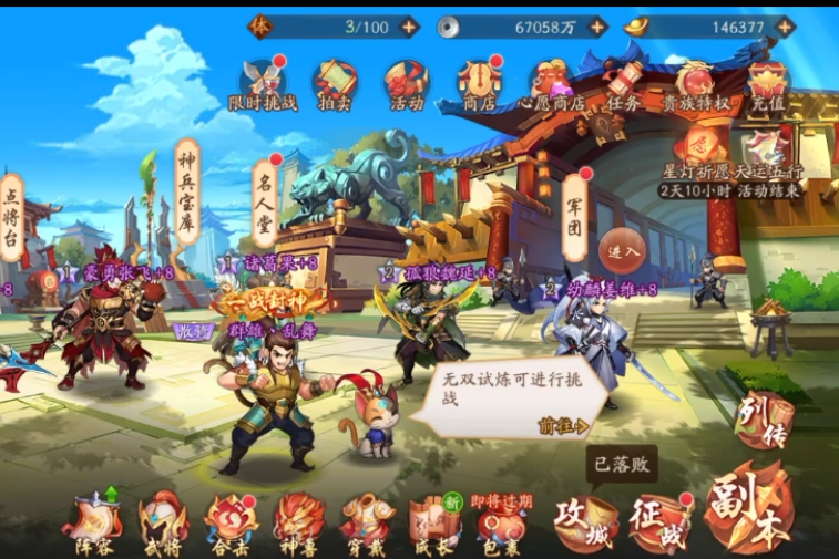 加速功能适配多种核心玩法,主线副本闯关时开启3倍加速,能快速推进剧情、解锁新章节,获取武将碎片与装备资源;日常副本与叛军攻打时,用全局加速可缩短流程,高效完成每日任务,积累进阶丹、精炼石等养成材料;逐鹿中原、帝陵探索等组队玩法中,加速能减少等待时间,快速完成叛军击杀、据点占领等操作,提升团队效率。开启加速时要合理控制倍数,避免因速度过快错过重要奖励提示,同时确保网络稳定,防止加速过程中出现卡顿或掉线,影响游戏体验。