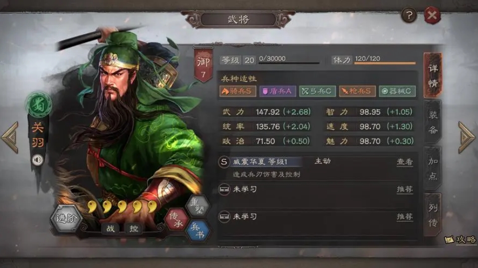 开荒阶段首选赵云搭配郭淮,是低战损开荒的最优紫将组合,郭淮自带御敌屏障,能为群体提供稳定减伤,搭配暂避其锋后,可进一步降低赵云受到的兵刃与谋略伤害,赵云自身携带援救与后发制人,既能保证队伍续航回复,又能借助反击稳定补充输出,两人组合兵种选盾兵或枪兵,赵云全武力加点,郭淮全统率加点,兵书赵云选虚实以治击乱,郭淮选军形避其锐气,这套组合可平稳单刷3到5级地,即便兵力不足也能靠减伤与回复压低战损,新手过渡期无需更换阵容,资源消耗极低。