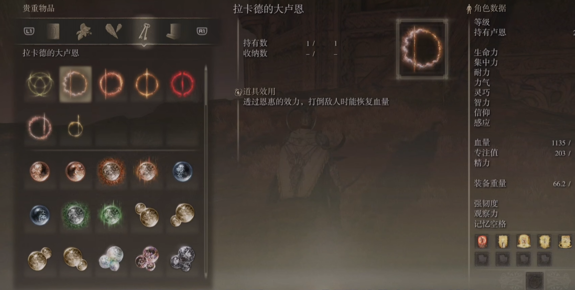 每个大卢恩的效果各不相同,比如葛瑞克的大卢恩能提升所有属性,而拉塔恩的大卢恩则增加血量、专注值和精力上限。这些效果在挑战强力BOSS时非常有用,尤其是面对后期的高难度敌人时,合理搭配大卢恩能让战斗轻松不少。同一时间只能装备一个大卢恩,所以咱们要根据当前的战斗需求灵活选择。
