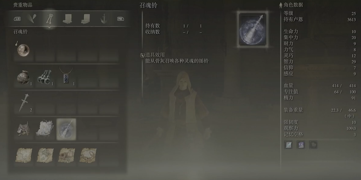 如果错过了魔女蕾娜的剧情,也别着急。三狼骨灰还能在艾雷教堂的商人咖列那里买到,他就在锻造台旁边,售价200魂。不过直接找魔女领取更划算,毕竟还能拿到召魂铃。召魂铃是召唤骨灰的必备道具,没有它就算有骨灰也无法使用。拿到召魂铃后,记得把它放在快捷栏里,这样召唤时更方便。