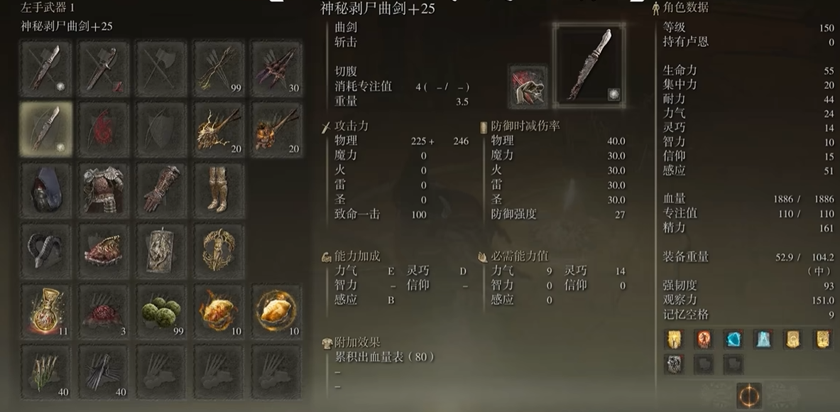 武器与战灰的选择直接影响感应流的实战表现。近战主手武器以自带出血效果的双小曲跳劈为主,长牙太刀配合切腹战技可快速叠加出血量表;副手推荐携带肋差短剑形成特殊双持连击,或装备滑轮弩远程触发出血。魔法流派则可选用白金杖,其S级感应补正能显著提升荆棘魔法的出血效率。战灰方面除切腹外,骑士的决心可大幅提升单次攻击爆发,适合搭配高伤害战技使用。