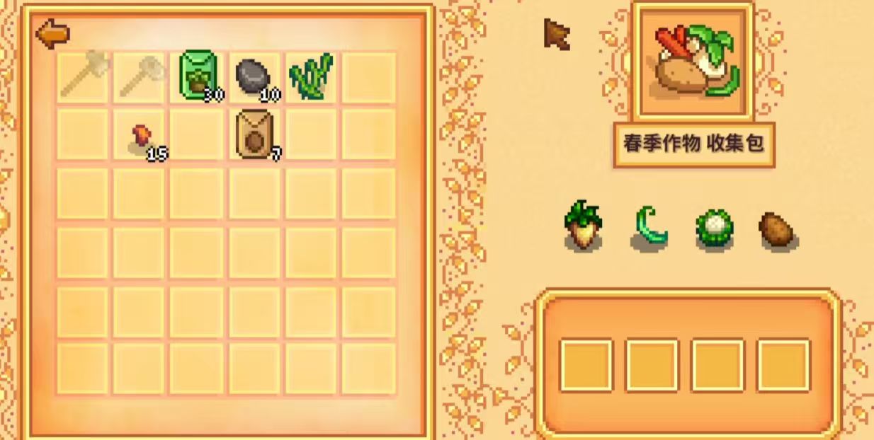 触发献祭任务需要在春季第五天上午8点到下午1点之间前往公交站,遇到镇长刘易斯后进入社区中心。第二天法师会来信让你去法师塔,之后就能读懂祝尼魔文字开始收集。工艺室的春季觅食包最容易完成,包含野山葵、蒲公英等常见物品,完成后能获得春季种子奖励。茶水间的作物包需要种植防风草、土豆等基础作物,建议开局就种下以便尽早完成。