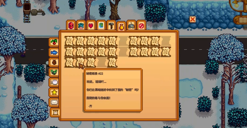 如果发现纸条内容难以理解,可以结合游戏内的环境和角色对话寻找线索。比如某些纸条会提到季节或时间限制,需要在特定条件下才能触发后续事件。秘密纸条也可以送给村民,但大多数人对它并不感兴趣,所以最好还是自己留着探索用途。