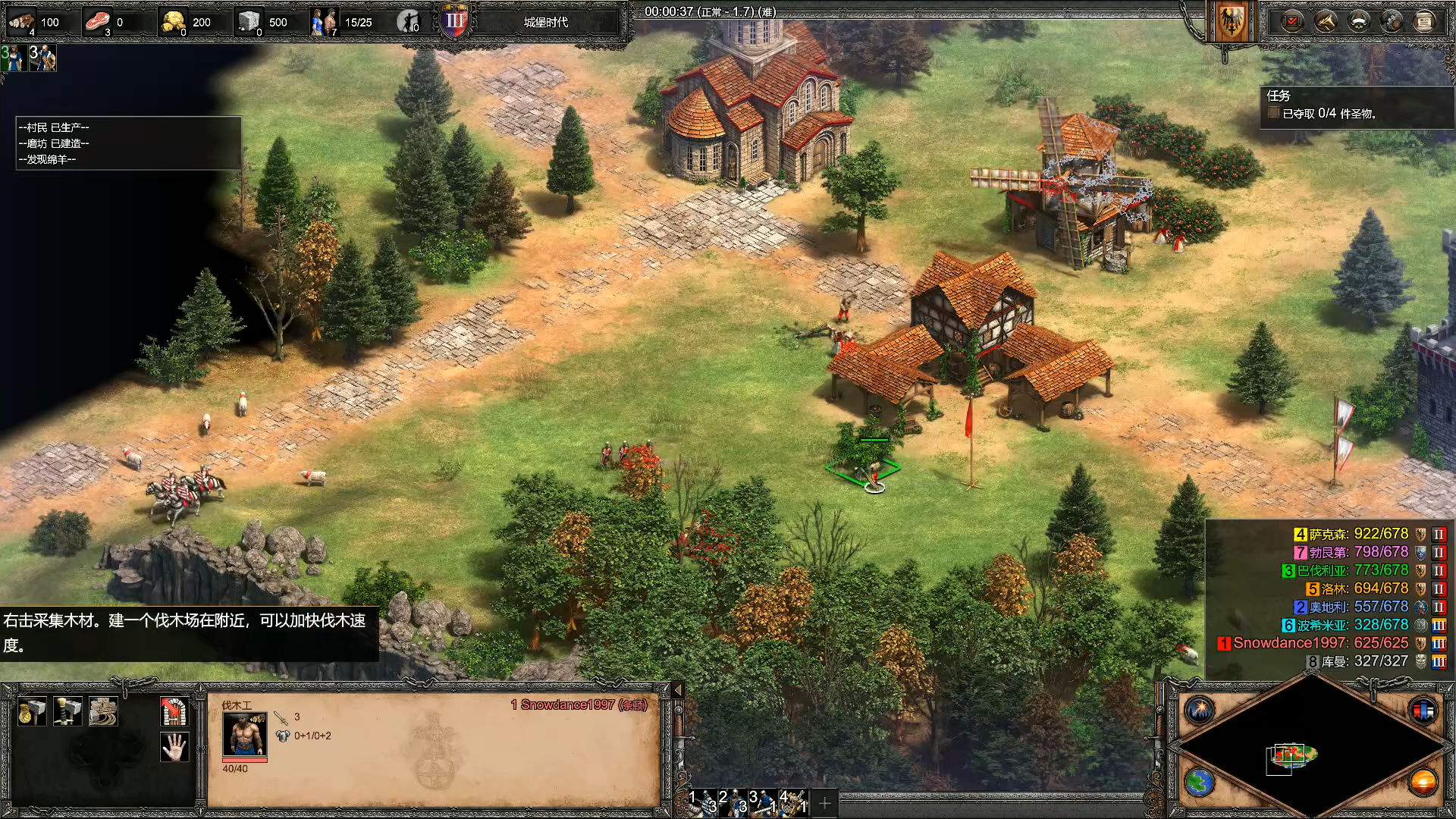 快速发展的关键在于合理分配资源和高效管理村民。开局时立刻让三个村民建造房屋,同时训练新村民不要停。前六个村民全部去采集羊,记得让侦察兵把附近的羊赶回城镇中心附近。木材是早期最重要的资源,第七到第十个村民直接去伐木,记得及时建造伐木场提升效率。食物来源要多样化,第十一到十三个村民去采集浆果,同时别忘了引野猪来补充食物。