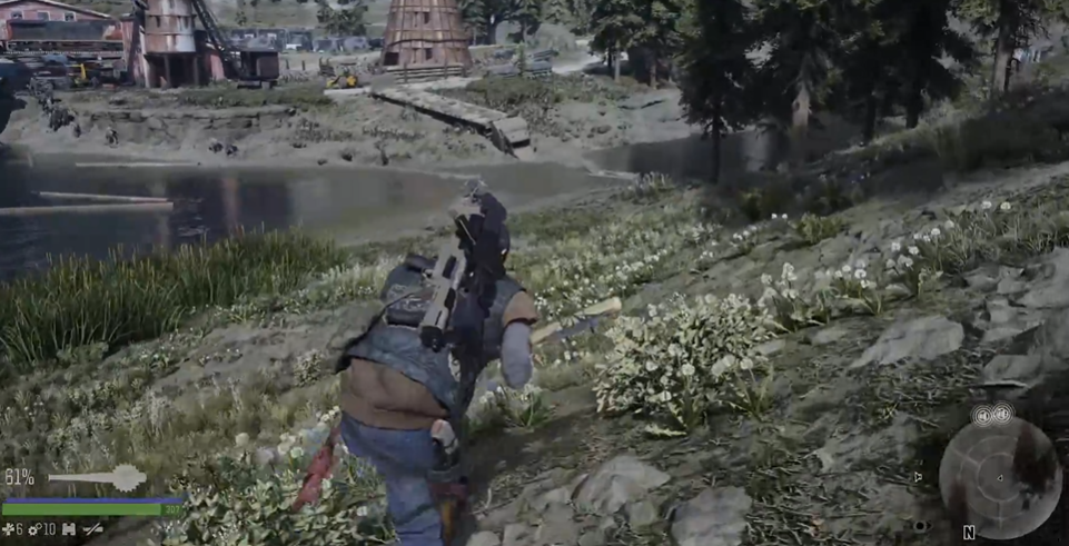 如果选择近战,可以弯腰慢速移动靠近小屋,运气好能在房间里发现二犬,直接背刺搞定。还有个取巧的方法是利用丧尸潮——二犬有时会自己引来尸群,咱们可以等他被丧尸围攻时捡漏。仓库区域有两个入口,如果他躲进仓库,可以从另一个门绕后堵截,这样他会迎面撞上你。
