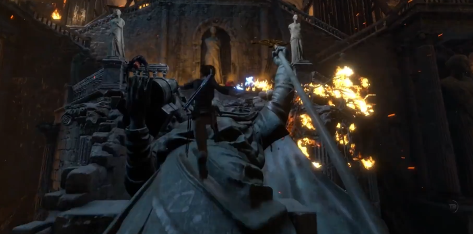右侧存放希腊火的地方有个油桶,需要用绳索勾住它,然后拽动脚手架让两边都固定住。等油桶移动到平台上后,快速用刀子割断绳子推下去。这里的关键是掌握好时机,如果油桶移动太快可能会错过最佳位置。记得多按求生本能键观察环境,这样能更清楚看到操作点。