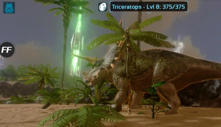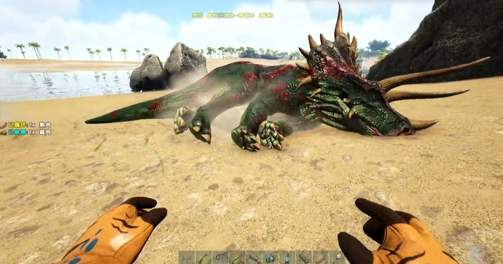 驯服后记得制作三角龙鞍,16级就能解锁。装备鞍具后可以骑乘,还能使用它的冲刺技能——屏幕左侧上滑蓄力,再上滑释放。三角龙采集浆果效率很高,破坏植物能获得大量资源。前期带着它出门既安全又实用,遇到危险还能用冲刺技能脱身。如果想更稳一点,可以先驯服淡水碳龟帮忙扛伤害。让乌龟吸引三角龙注意,咱们从背后用木棒敲打。注意控制乌龟攻击节奏,别把三角龙打死了。这种方法适合还没解锁远程武器的阶段。