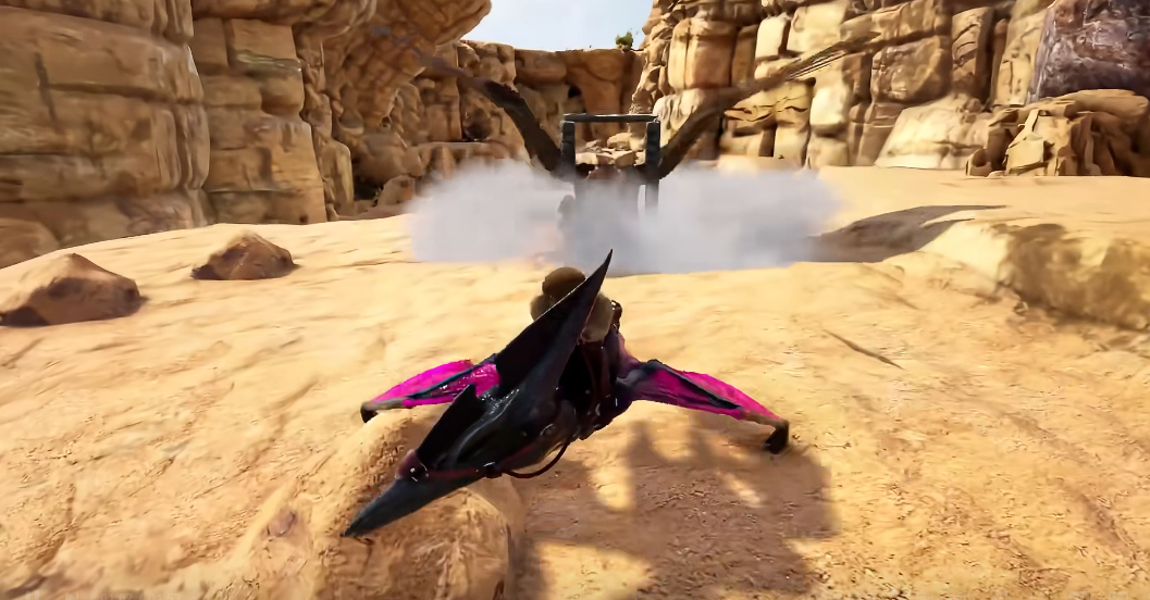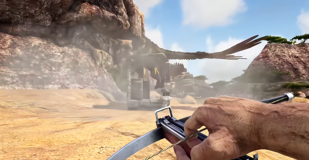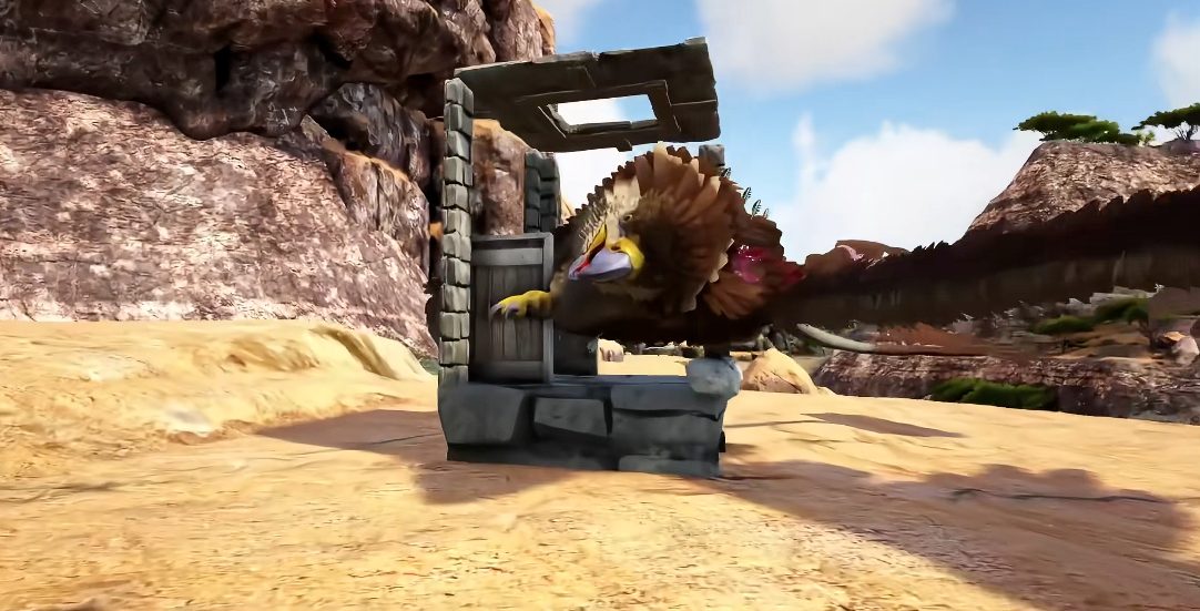 异特龙蛋饲料是首选食物,可大幅提升驯服效率,每个饲料约增加0.11%进度。若无饲料可用优质生肉替代,但驯服时间会显著延长。喂养期间需持续使用麻醉药维持眩晕值,防止狮鹫提前苏醒。驯服进度达100%后即可装备鞍具骑乘。俯冲攻击能造成多倍伤害,操作时需从高空垂直下落并在接近地面时调整翅膀角度。滑翔功能可节省耐力消耗,通过俯冲获得初速度后平飞实现远距离移动。
